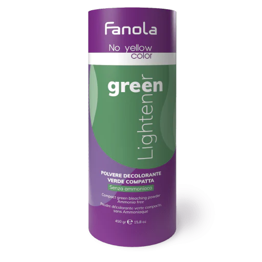 Achieve the perfect blonde while managing red tones during lightening with Fanola's No Yellow Compact Green Bleaching Powder. Specially designed for dark bases (level 4/6), this ammonia-free, vegan formula offers gentle, even, and uniform lightening for natural hair.